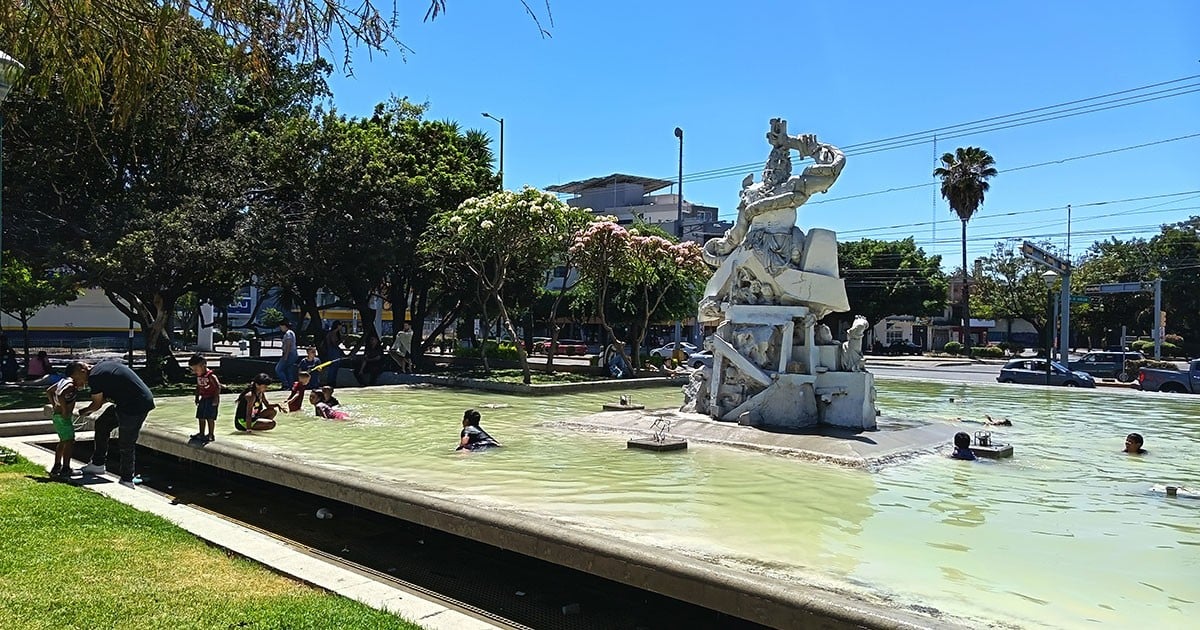 Leoneses aprovechan el calor para refrescarse en espacios públicos. Foto: Carolina Esqueda