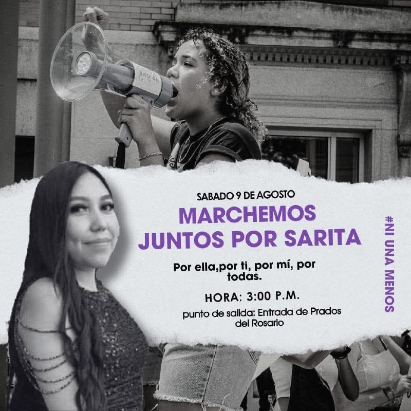 “Marchemos juntos por Sarita”; “Marcha por la desaparición de Sarahí Vázquez”; “Por Sarahí, por mi mamá, por mi hermana, por todas, salgamos a marchar”; “Marcharemos por Sarita, por todas las que nos faltan, por nuestras madres, hermanas, amigas. Por ti. Por todas”, son los mensajes en las diversas convocatorias.