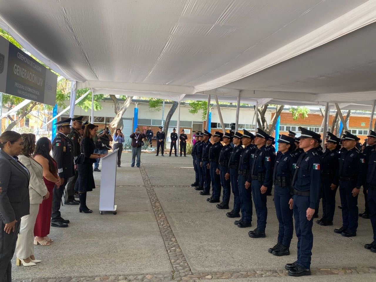 Jorge Guillén Rico, Secretario de Seguridad Pública, felicitó a los ahora oficiales por el desempeño realizado y el logro de sumarse a los elementos de seguridad.