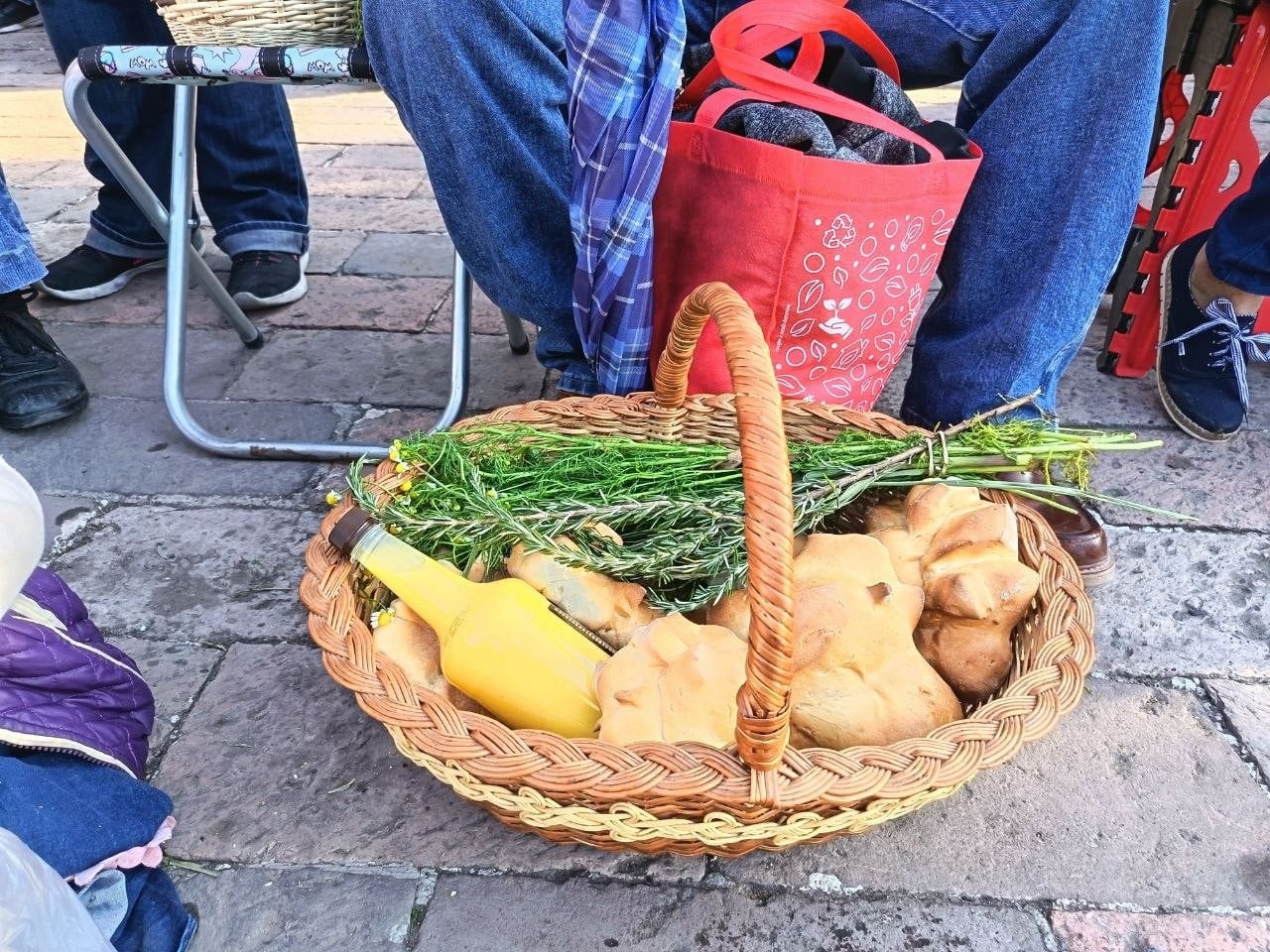 Las familias llegan con sus canastas adornadas con servilletas de tela; en algunos hogares, las mujeres bordan con anticipación la carpeta donde colocan minuciosamente el pan de agua, hierbas de olor medicinales, rompope y vino.