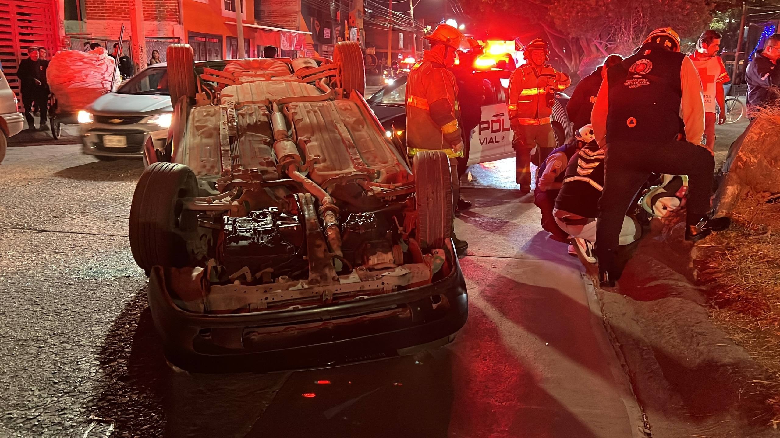 Según los primeros reportes, la mujer perdió el control de la unidad y se impactó contra la base de un árbol, lo que ocasionó que el automóvil terminara volcado sobre la vialidad.