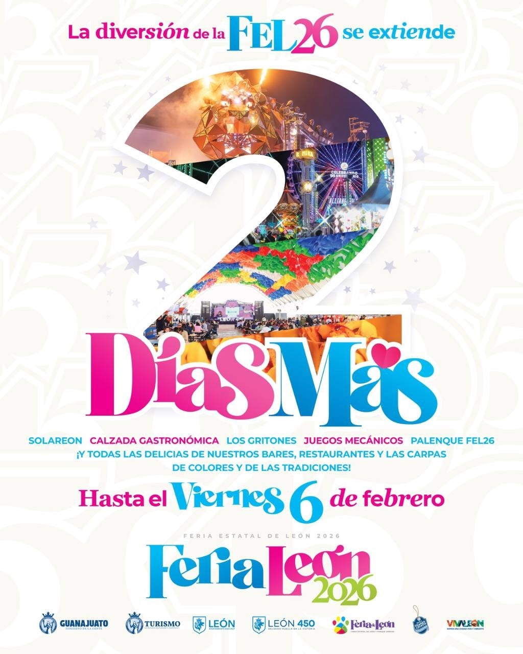 León, Gto.- La Feria de León 2026 suma dos días más de diversión y el cierre del evento se aplazará hasta el 6 de febrero.