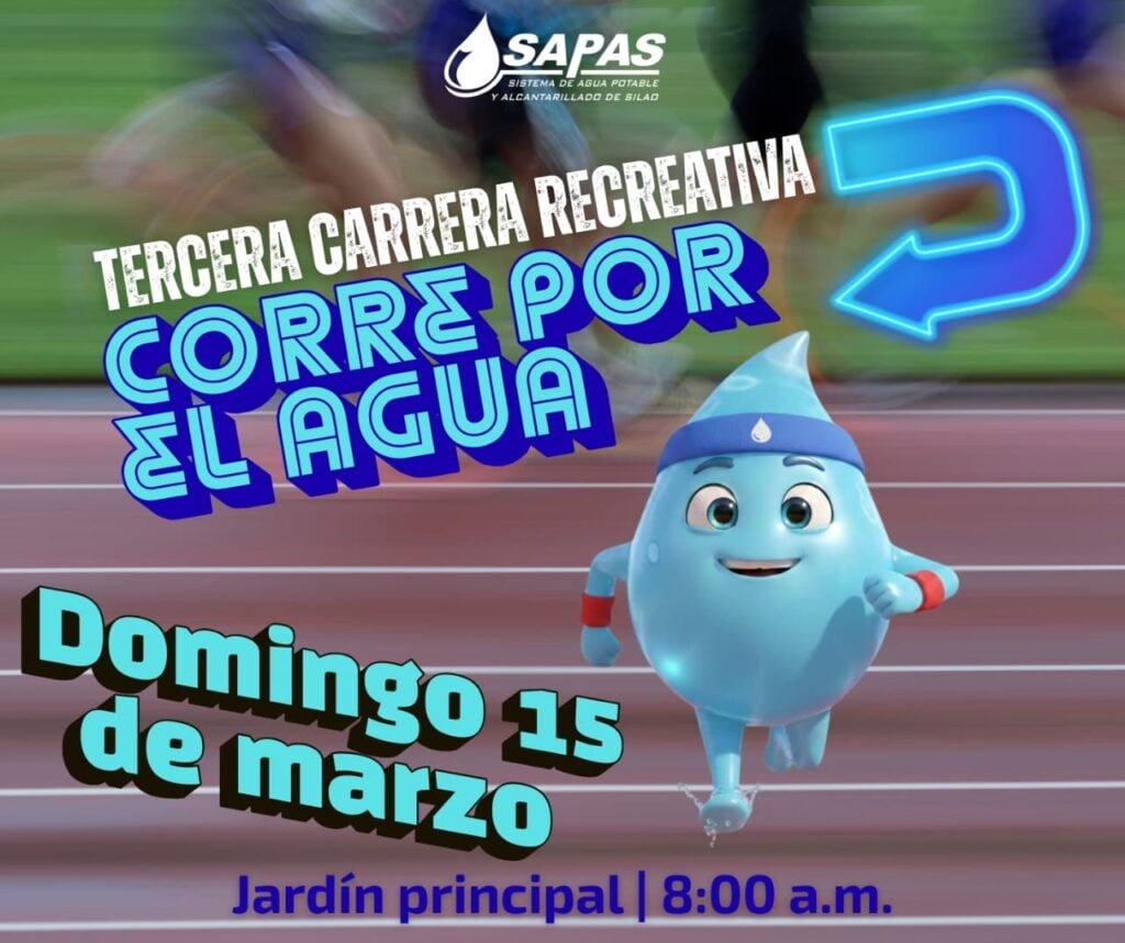 Silao, Gto.- Para conmemorar el Día Mundial del Agua, el Sistema de Agua Potable y Alcantarillado de Silao (SAPAS) celebrará la tercera edición de su carrera familiar y recreativa “#CorrePorElAgua” el domingo 15 de marzo de 2026. La inscripción para participar en la carrera será gratuita.