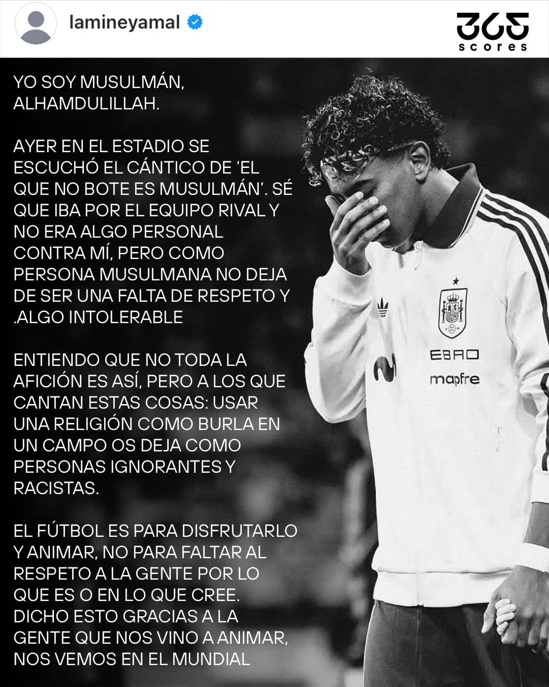 Por lo que bajo este contexto, Lamine Yamal recordó en redes sociales su religión, en un mensaje en el que pide respeto.