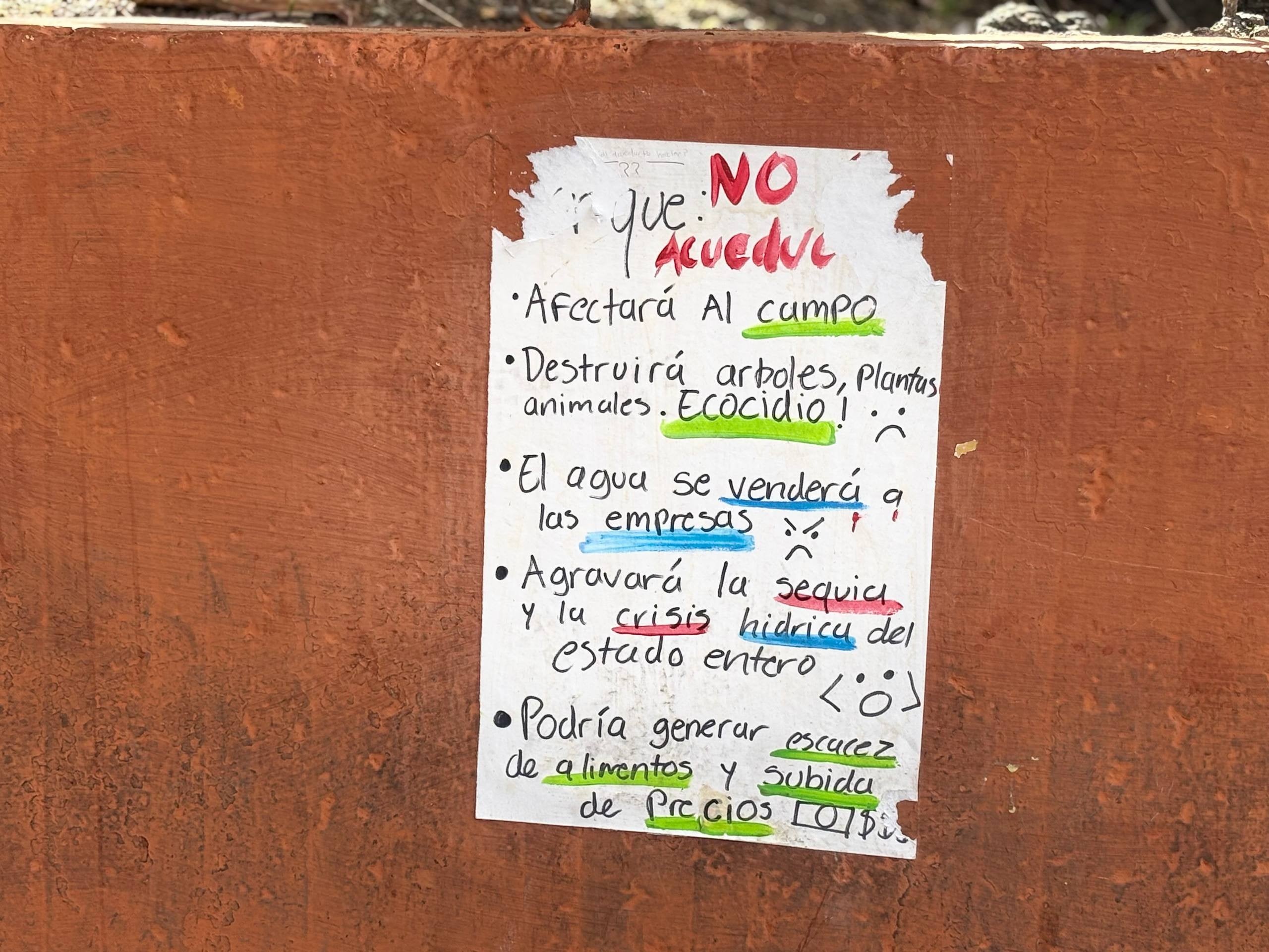 Además se detectó otros con textos más amplios que enlistan porque negarse al acueducto Solís – León como el ubicado en Calle Sóstenes Rocha que se lee: “¿Por qué no al acueducto?