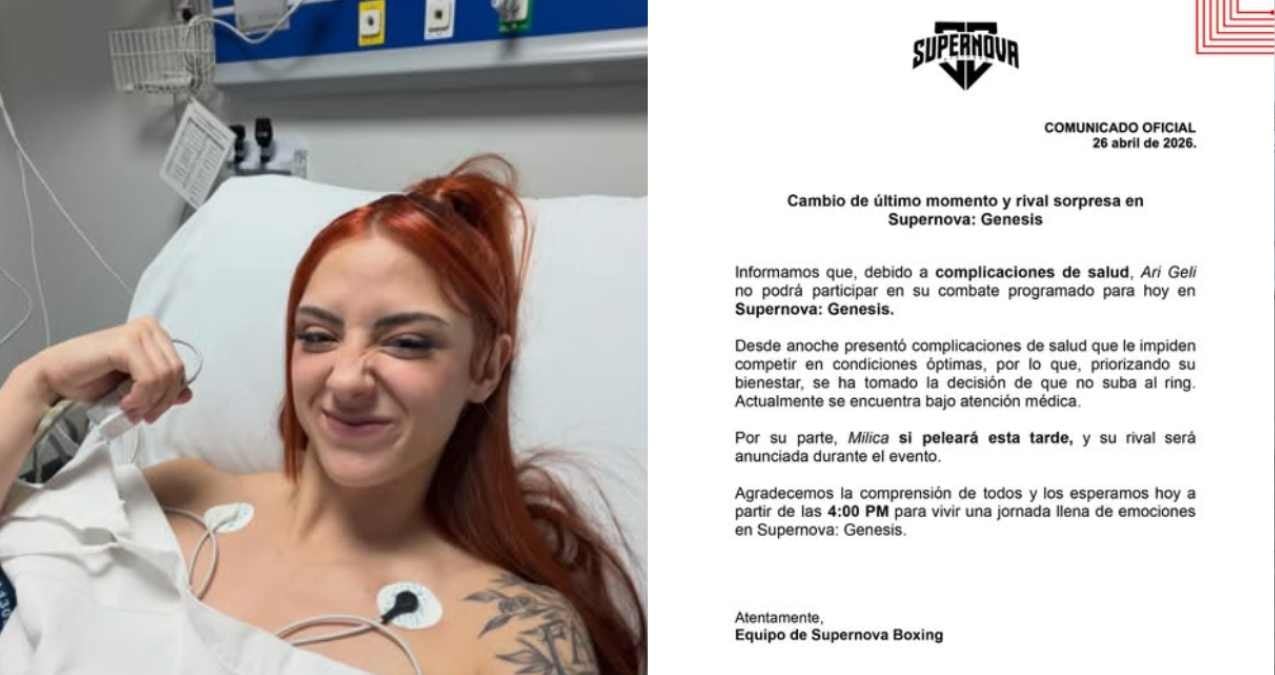 De acuerdo con el comunicado oficial de Supernova 2026 emitido por el equipo organizador, la decisión se tomó luego de que la peleadora tuvo malestares que la llevaron al hospital: