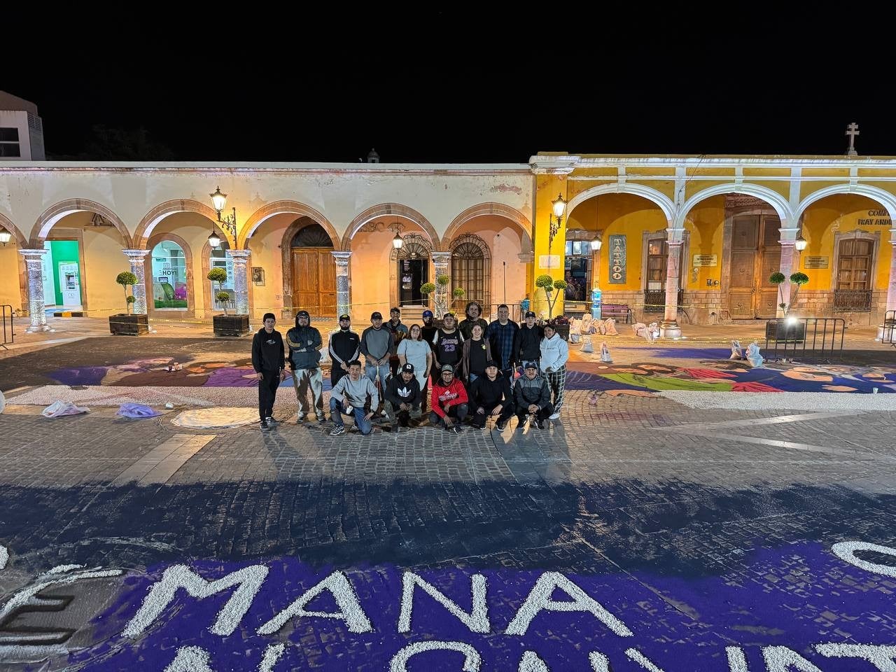 Desde alrededor de las 16:00 horas del domingo, cerca de 25 personas iniciaron los trabajos de diseño y colocación de materiales, una labor que, tan solo en su primera etapa, se extendió por aproximadamente cinco horas. El proyecto, que combina precisión, paciencia y creatividad, avanza a contrarreloj para estar listo en los días clave de la celebración.