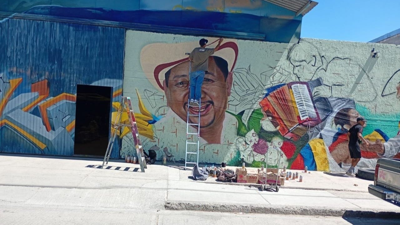León, Guanajuato.- Artistas representativos de la cumbia colombiana y de los que su música ha sonado por años en los barrios de la ciudad de León , están siendo plasmados en un gran mural que le dará color a la colonia Presidentes de México.