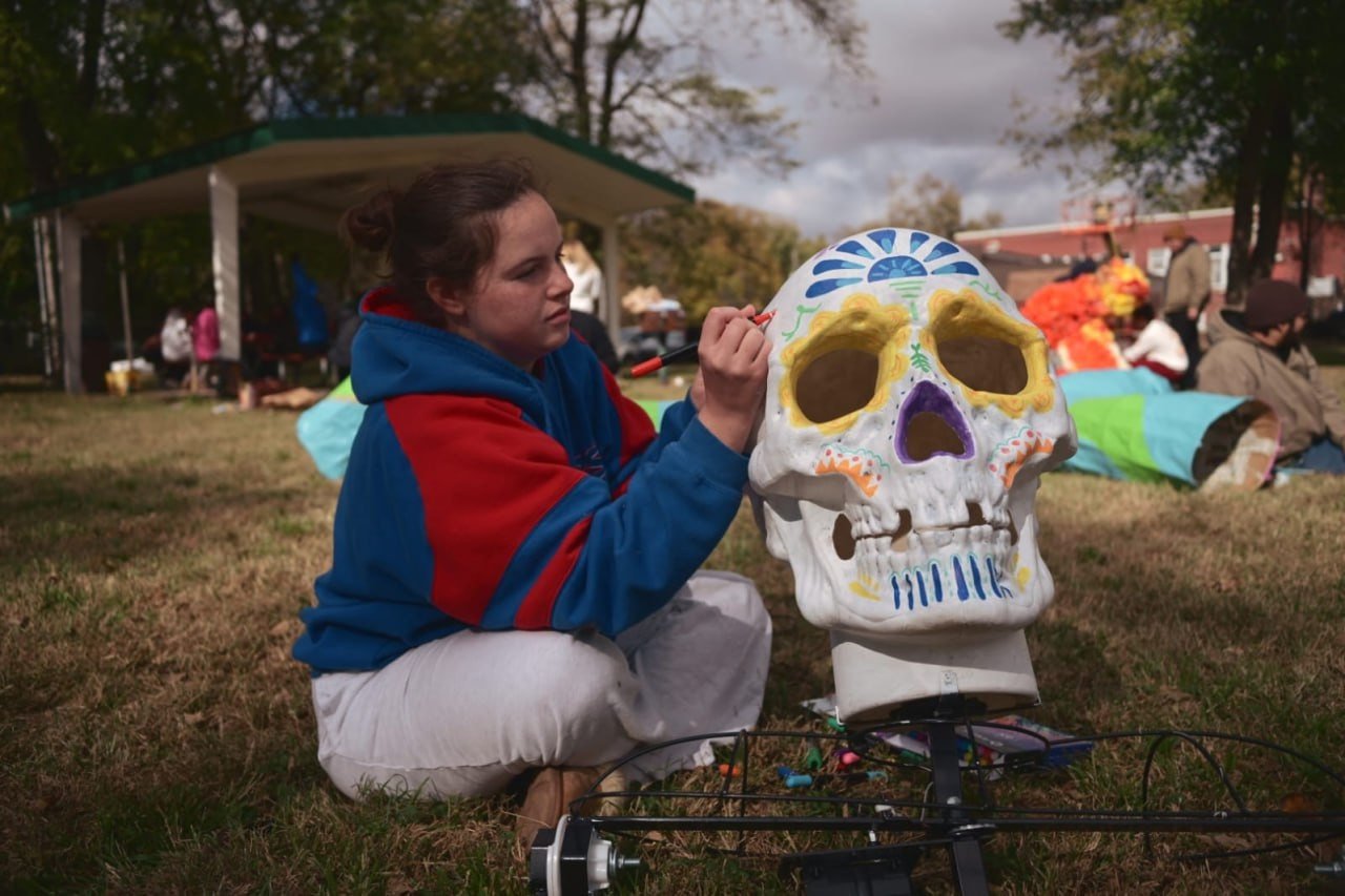 Durante dos semanas, los artistas iturbidenses convivieron con familias, estudiantes y voluntarios, quienes aprendieron a elaborar papel picado, flores de cempasúchil y coloridas decoraciones para las ofrendas y altares que más tarde engalanaron el John Taylor Park, escenario principal del festejo.