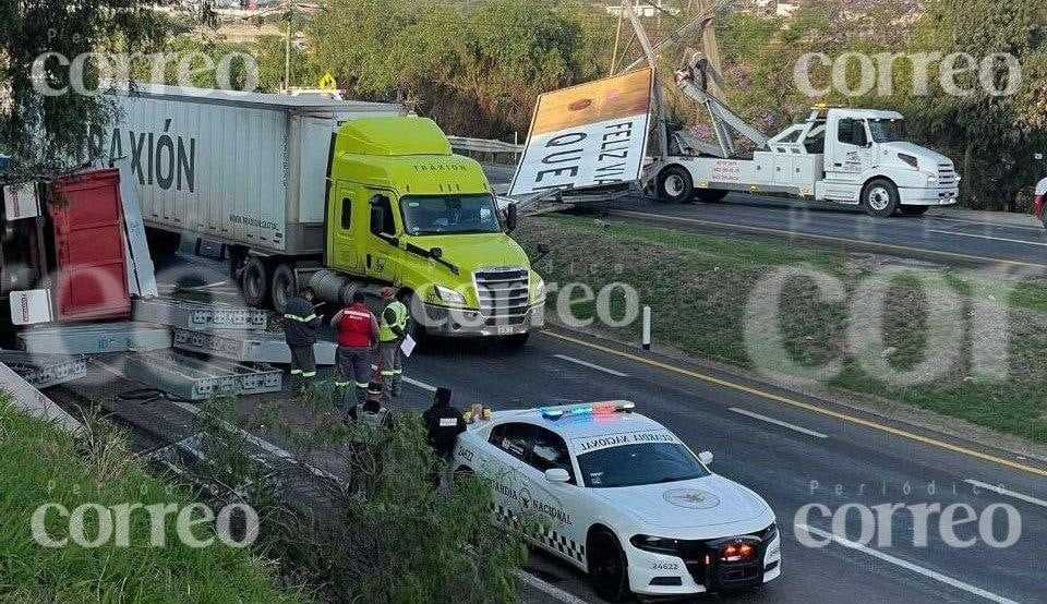 Tractocamión derriba espectacular en carretera federal 57, San José de Iturbide, y provoca caos vial