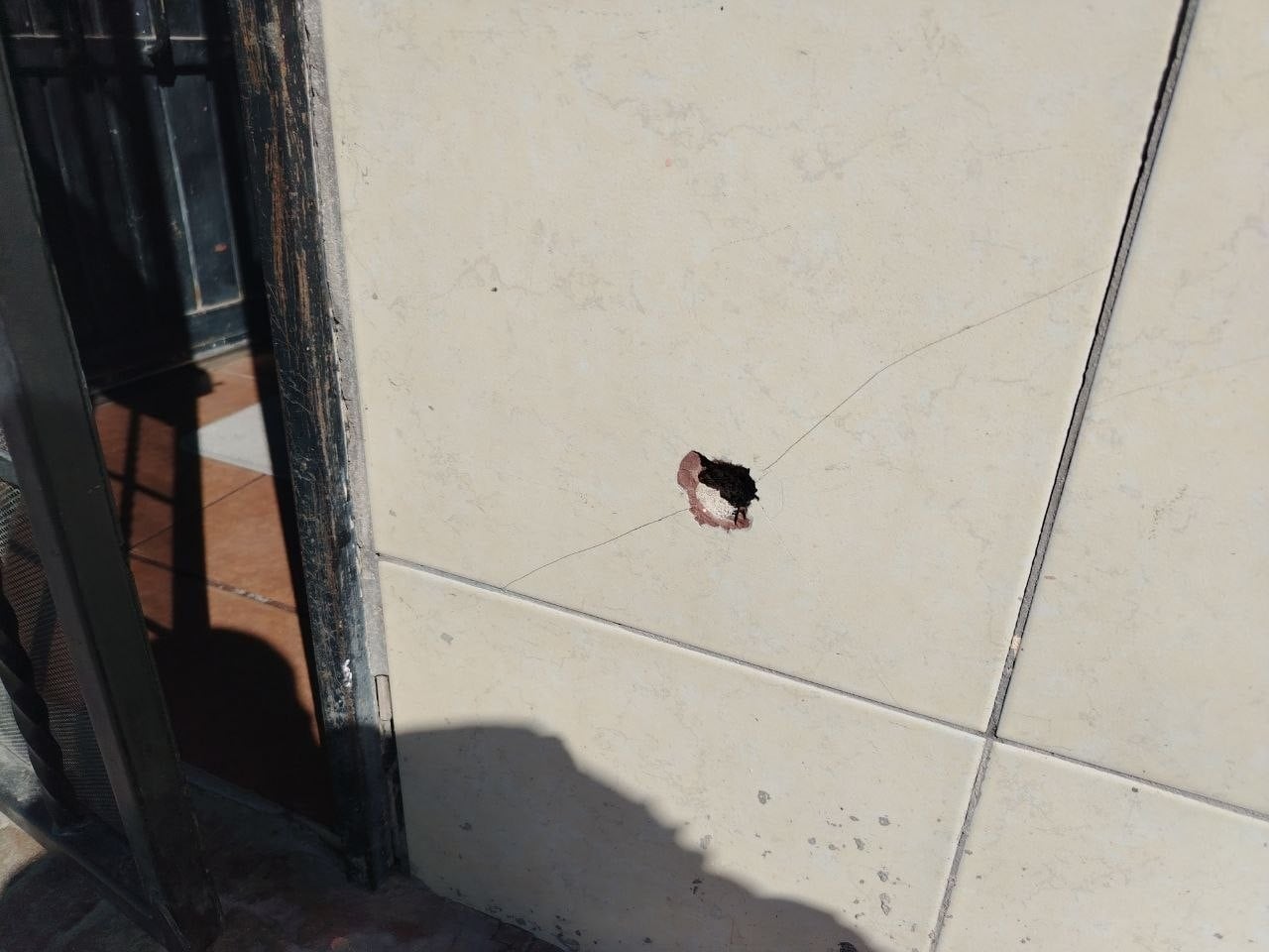 Las huellas de la agresión en el parque recreativo quedaron visibles en paredes y puertas de viviendas cercanas. Algunas fueron atravesadas por las balas, cuyos impactos podían observarse desde la mañana de este miércoles.