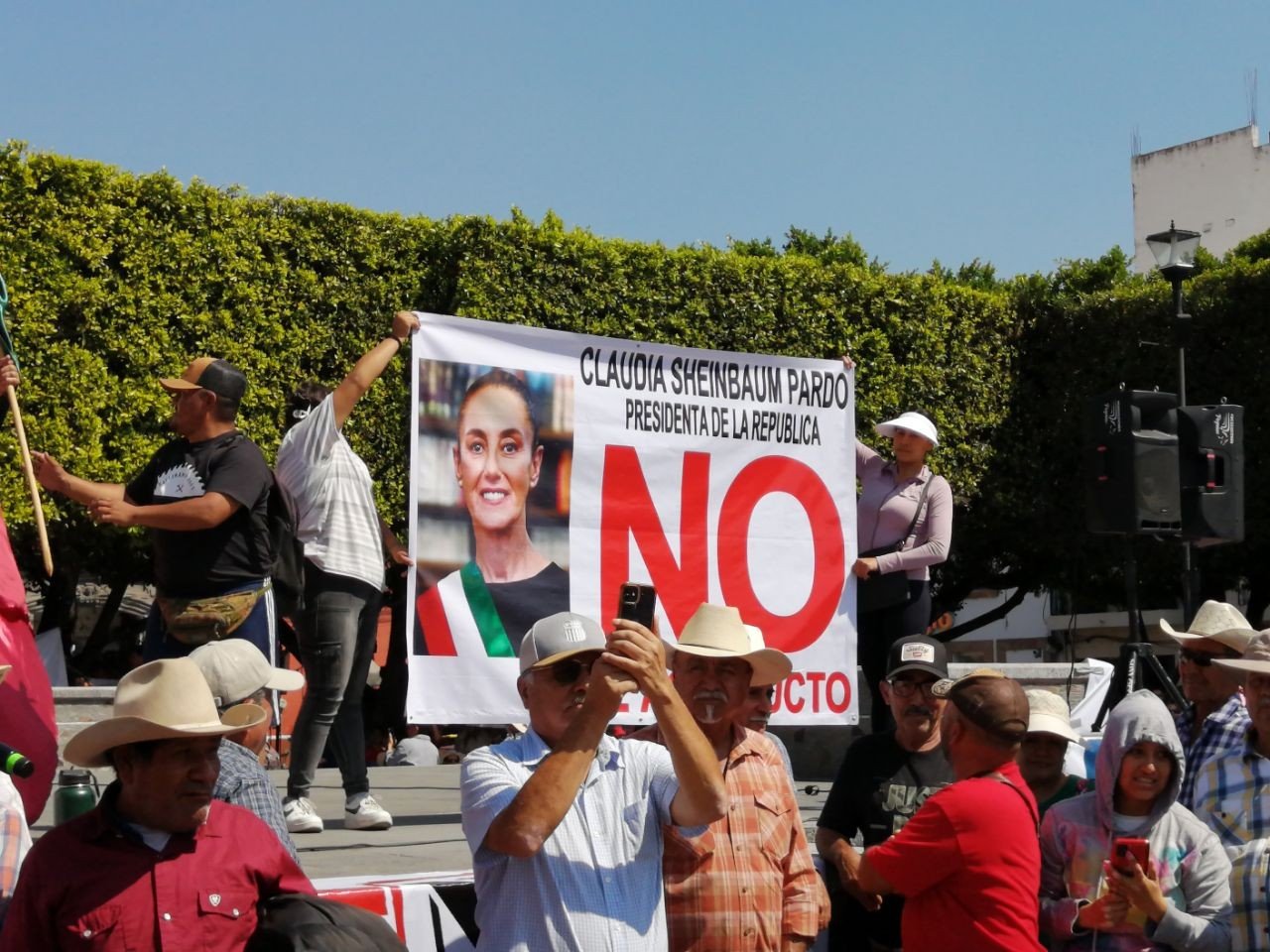 Después de unos 40 minutos de haber iniciado la manifestación pacífica en la Plaza Cívica Miguel Hidalgo, productores y ciudadanía exigieron que no se realice el proyecto del acueducto Solís–León.