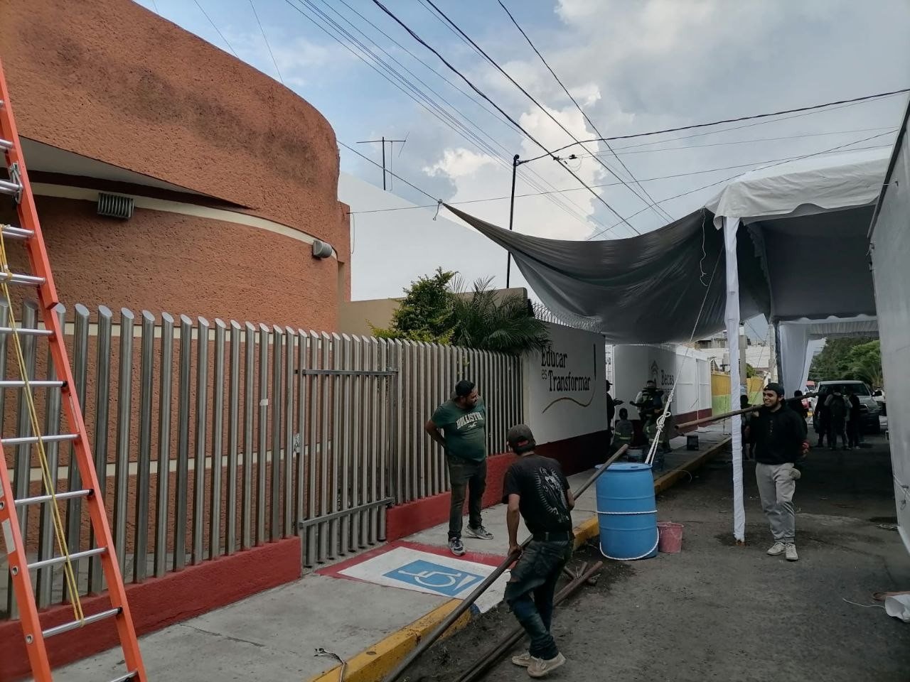 Por está razón personal de la Comisión Federal de Electricidad, de diversas áreas del municipio y de empresas de telefonía y cable laboraron pintando, limpiando, haciendo conexiones e instalando carpas y sillas para recibir a la presidenta, autoridades que se harán presentes y público invitado.