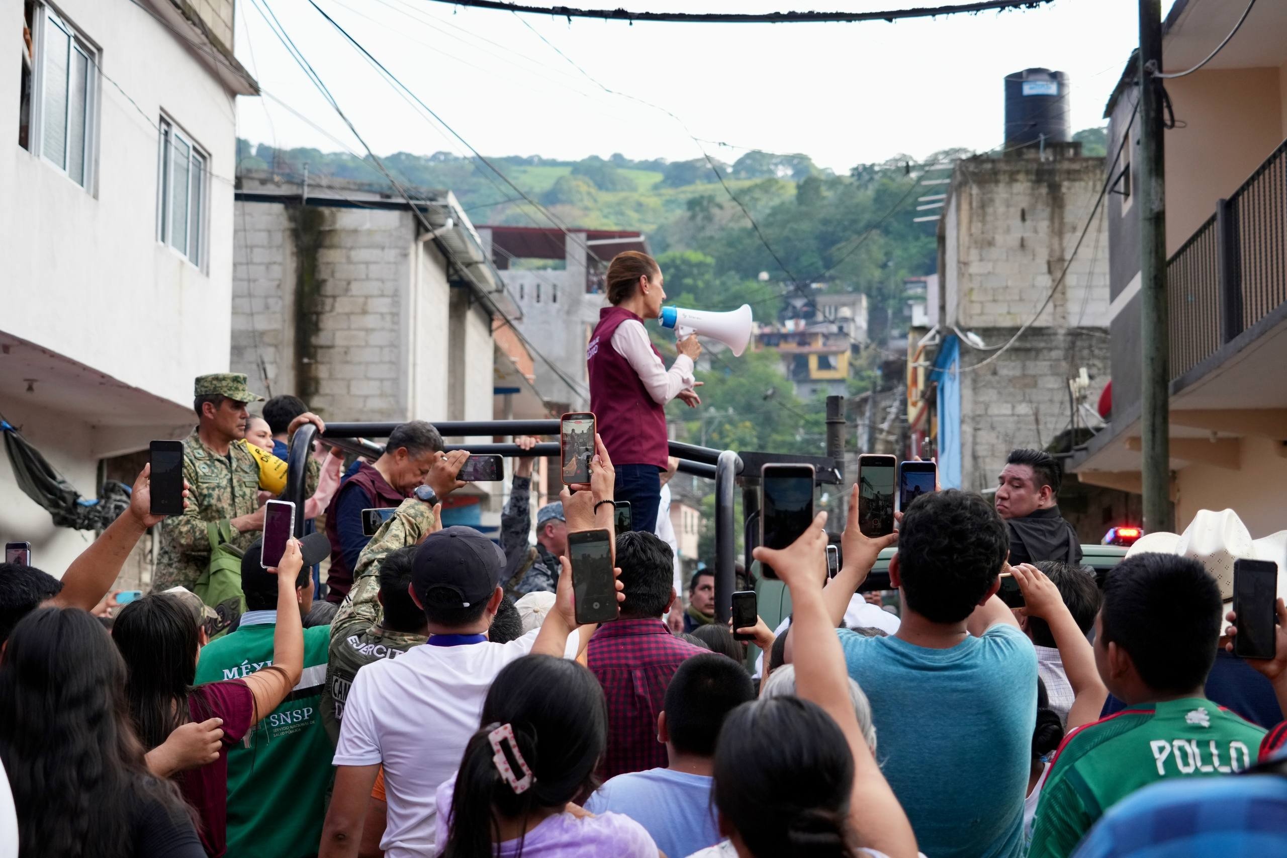 “Ya está abierto el camino de forma parcial, poco a poco llegará más maquinaria para acelerar la limpieza. Trabajamos en coordinación con el gobierno del estado. No están solos”, difundió la mandataria en sus redes sociales junto con imágenes de su diálogo con los habitantes de Huehuetla.