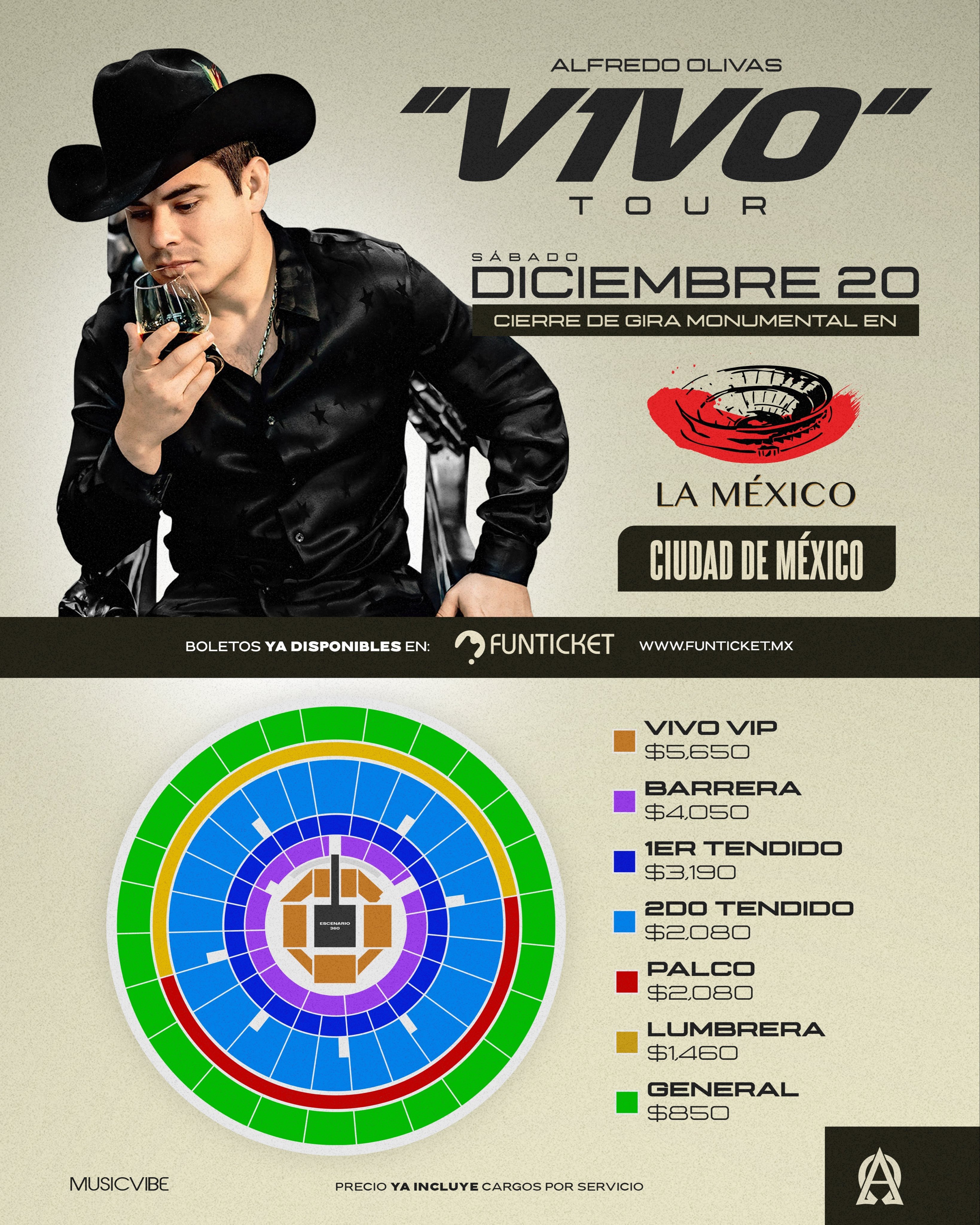 Los boletos para Alfredo Olivas en la Plaza México estarán disponibles a partir del jueves 16 de octubre a las 11:00 horas, a través de la página funticket.mx.