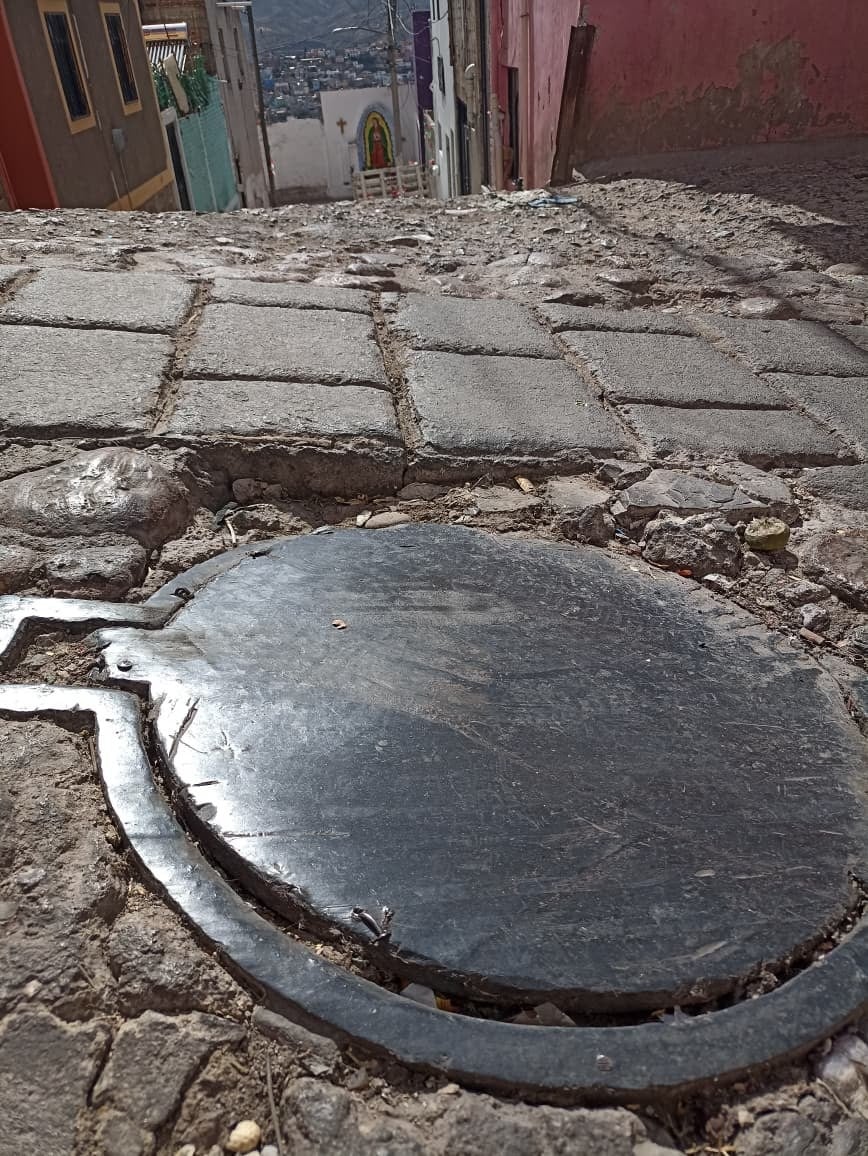 Incluso, hay tramos donde el pavimento ya ha desaparecido por completo dando paso a la tierra del cerro, coladeras hundidas y obstrucciones en la banqueta junto a tuberías de agua potable que han quedado expuestas al paso de los vehículos tras la desaparición del concreto.