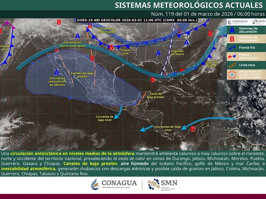Los pronósticos reportados por la Conagua podrían reforzarse con el acercamiento del Frente Frío 38 a México para la segunda mitad de la semana, manteniendo noches y mañanas frías a muy frías, así como precipitando el debilitamiento de la circulación anticiclónica en niveles medios de la atmósfera que aporta un incremento en las temperaturas diurnas.