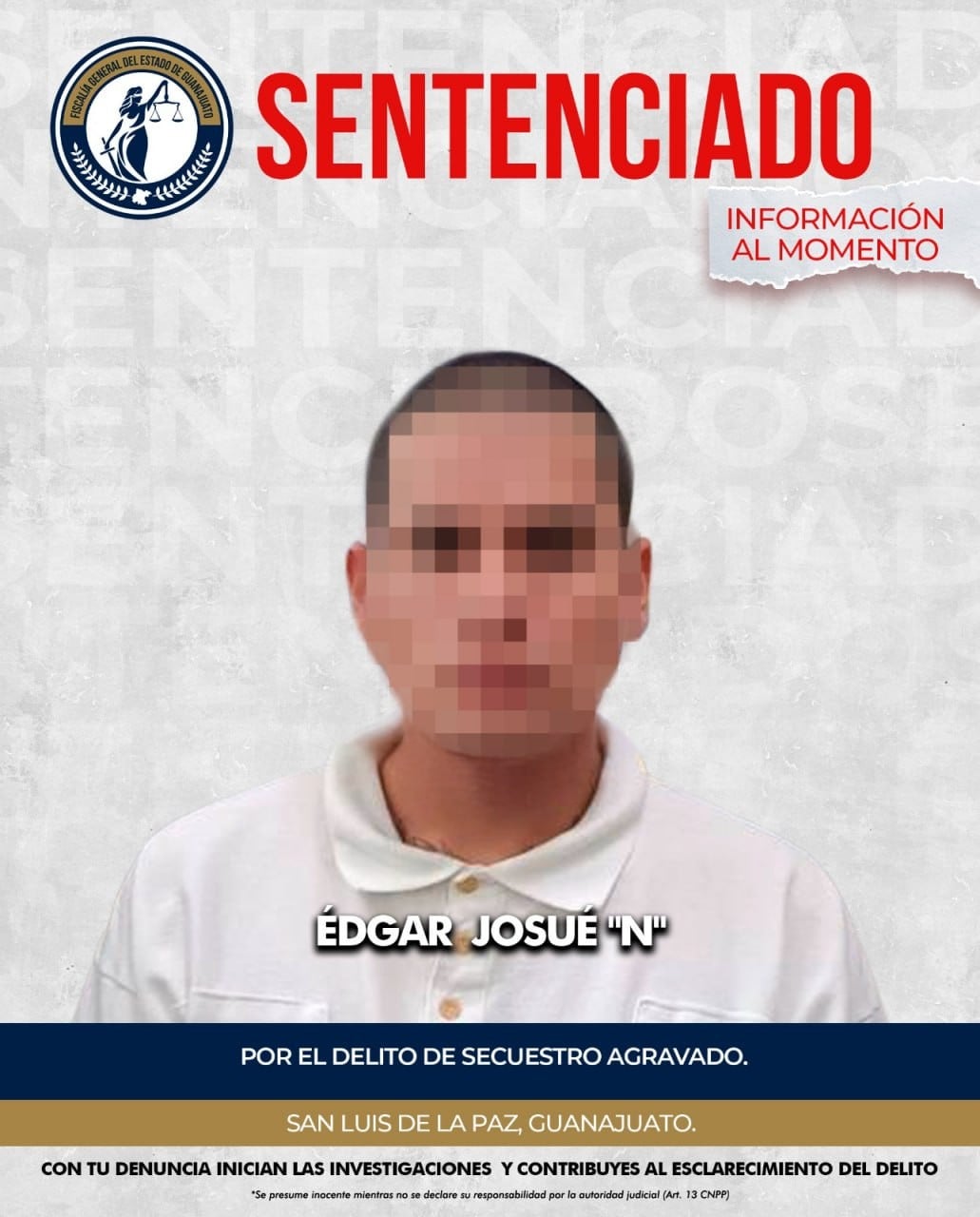 San Luis de la Paz, Gto.- Édgar Josué, conocido como El cotex, fue sentenciado a una pena equiparable a prisión de por vida, luego de que la Fiscalía General del Estado demostrara su responsabilidad en el plagio de una víctima ocurrido el 13 de marzo de 2023.