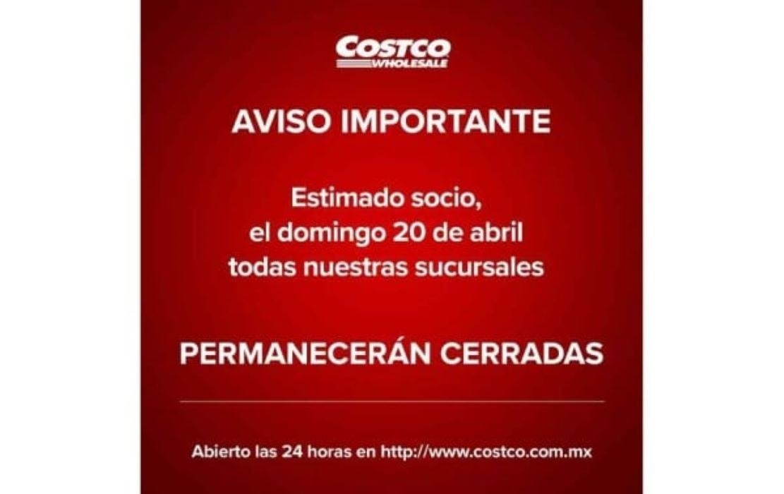 Lo anterior solo aplica para las 42 tiendas físicas de la franquicia, pues la tienda en línea de Costco en costco.com.mx seguirá operando con normalidad.