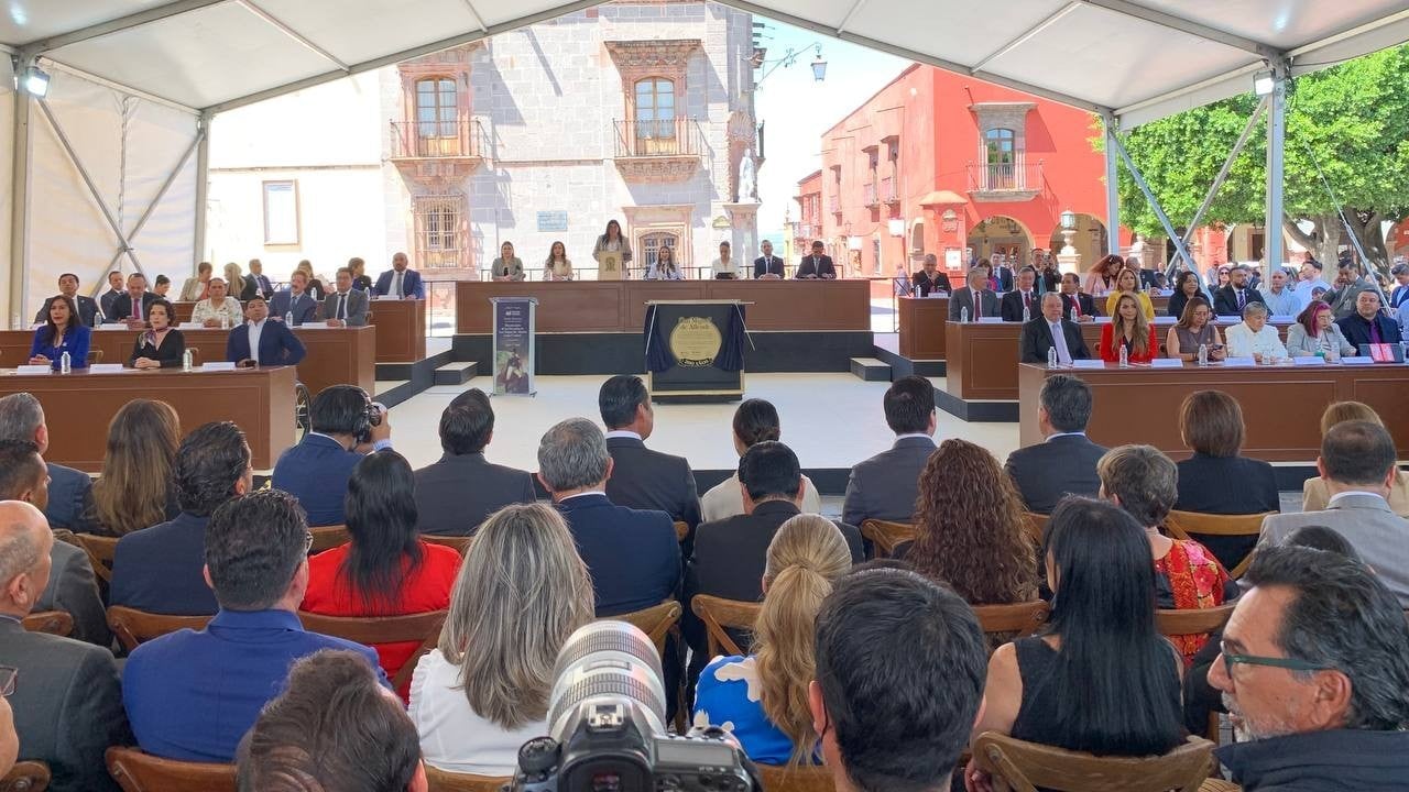 Como parte del acto protocolario, las representantes de los tres Poderes del Estado y el presidente municipal develaron una placa conmemorativa en reconocimiento al legado histórico, cultural y social de San Miguel de Allende como Ciudad Patrimonio de la Humanidad.