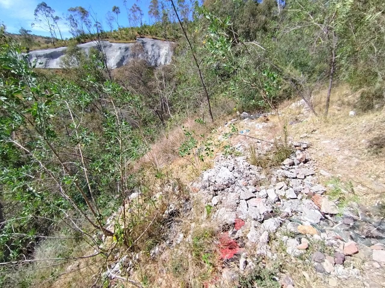 La acumulación de escombro y desperdicios ha formado enormes montañas que se extienden cada vez más hacia la parte baja de la cañada, arrasando con la vegetación del lugar.