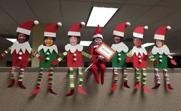 Esta año una de las decoraciones más populares es poner fotografías de los trabajadores en cuerpos de Santa Claus, elfos y renos.