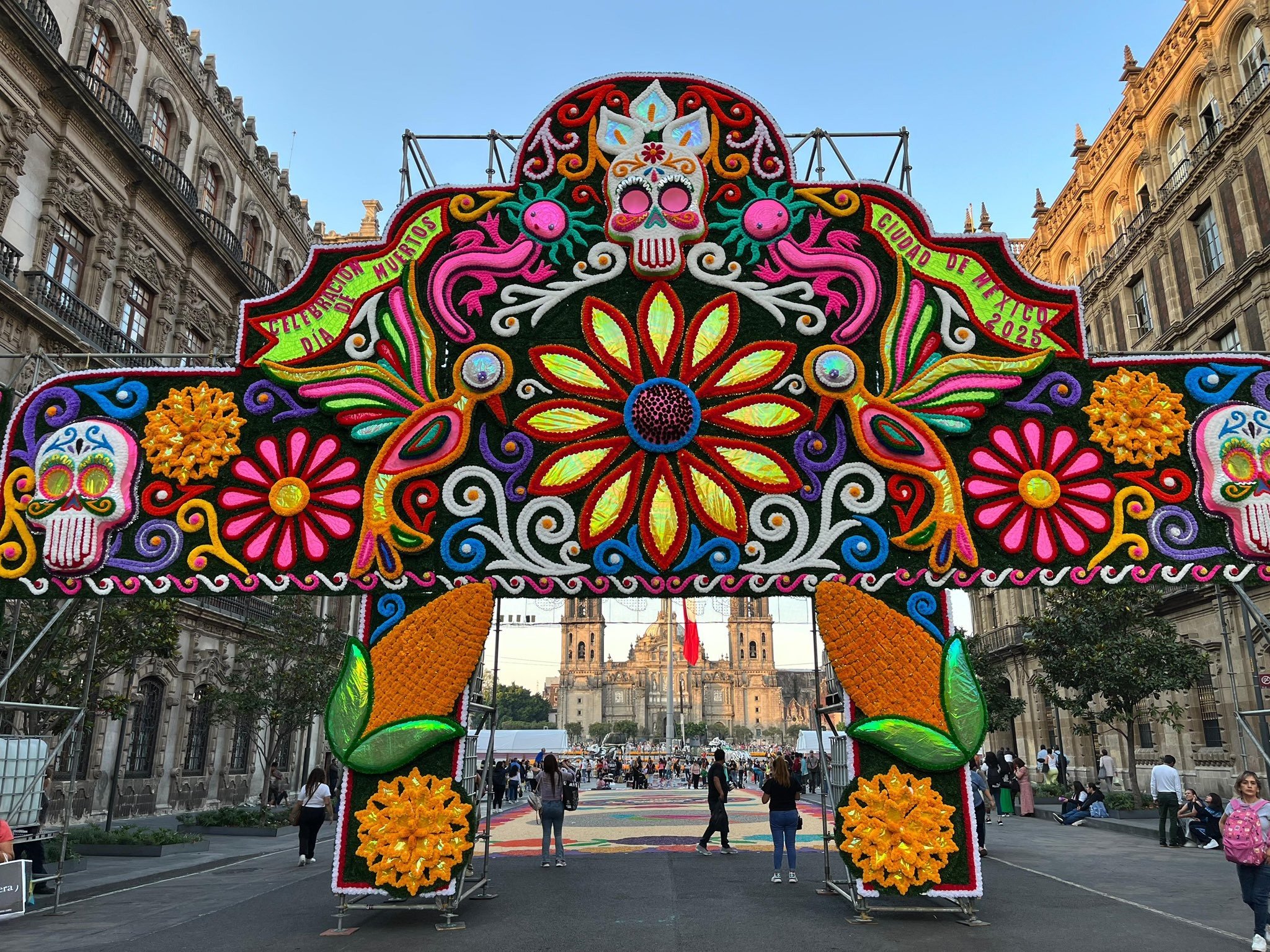 En la explanada de la Plaza de la Constitución se instaló la ofrenda monumental de Día de Muerto, por lo que se espera que el desfile termine en ese punto para dar pie a que se vea el altar.