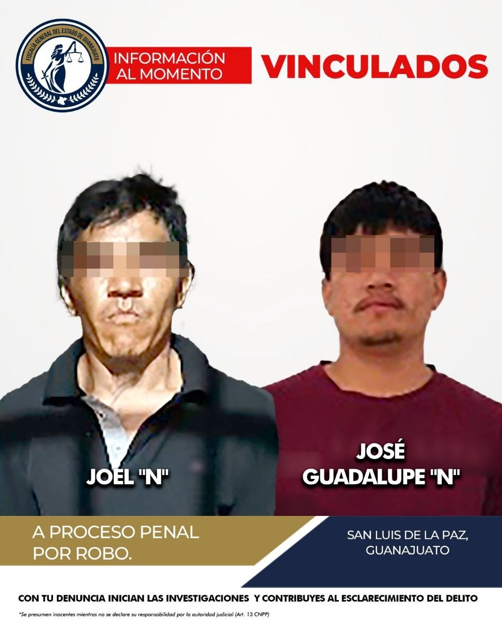 San Luis de la Paz, Gto.- El pasado 10 de mayo de 2025, en San Luis de la Paz se registró un violento asalto en la carretera federal, a la altura del kilómetro 65. De acuerdo a la carpeta de investigación iniciada por la Fiscalía General del Estado, JOEL “N” y JOSÉ GUADALUPE “N” interceptaron a la víctima, quien conducía una camioneta.