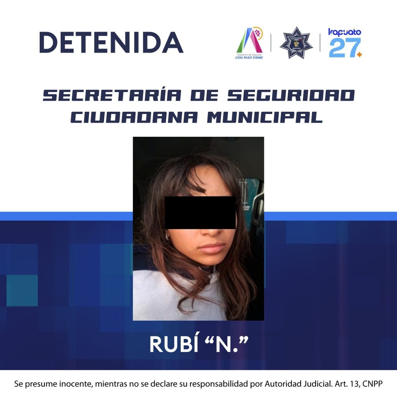 La detenida, identificada como Rubí “N”, de 18 años, fue puesta a disposición de la autoridad competente para determinar su situación legal.