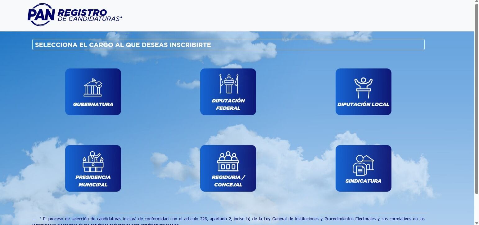 ¿Buscas una candidatura a gobernador, diputado o presidente municipal en los próximos comicios, pero no tienes partido político? Recientemente, el Partido Acción Nacional (PAN) abrió el registro para aspirantes ciudadanos que busquen un cargo en las elecciones intermedias de 2027 a través de su página oficial.