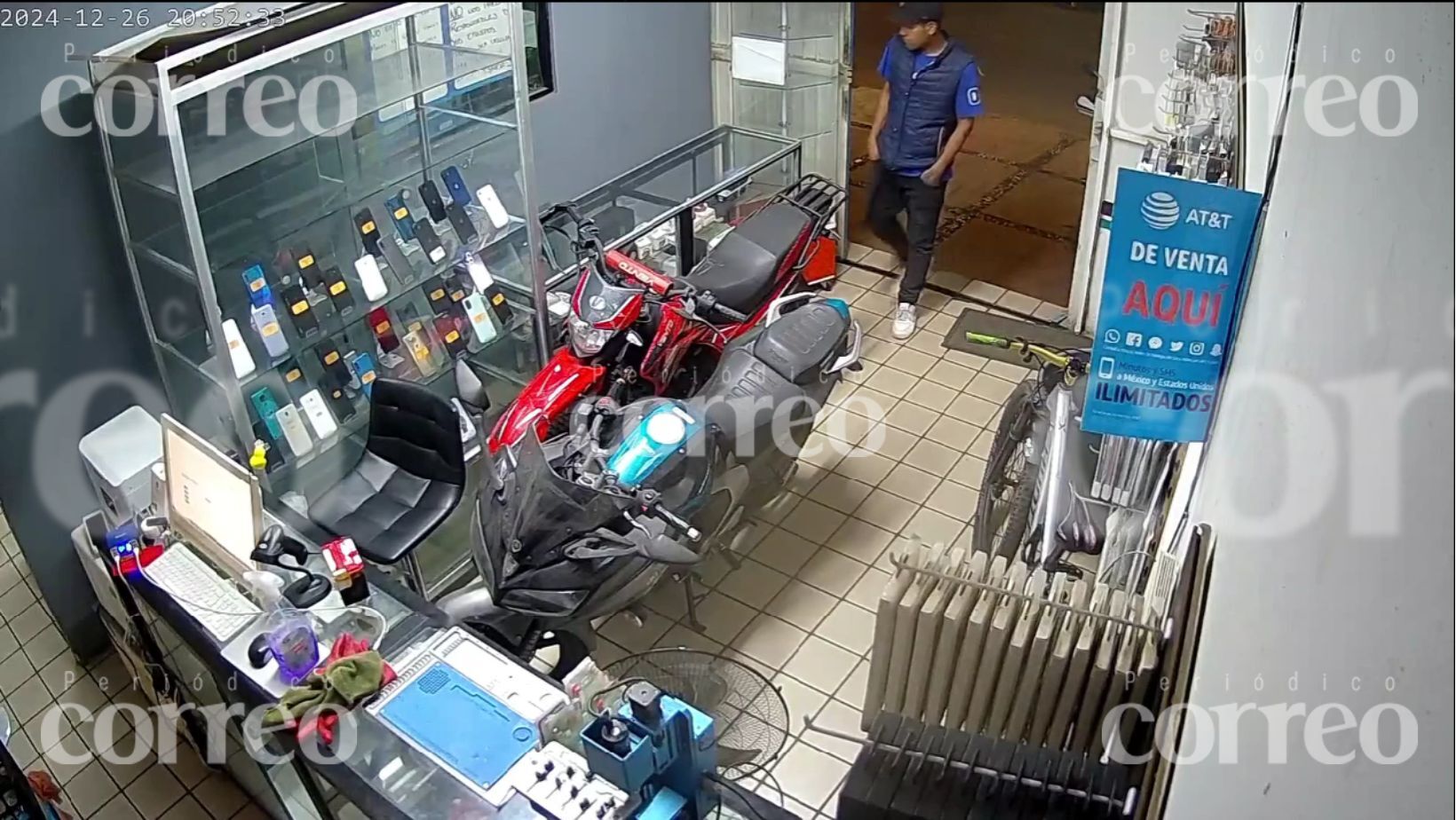 Guanajuato, Guanajuato.-. Frustra empleado de negocio de celulares un robo y lanza aviso a la población de prevenir que el presunto ladrón cometa una falta más grave. La noche del pasado jueves un capitalino fue victima de un intento de robo a su negocio donde el inculpado captado en video queda en evidencia por su torpe hazaña ya que daña un celular en el intento.