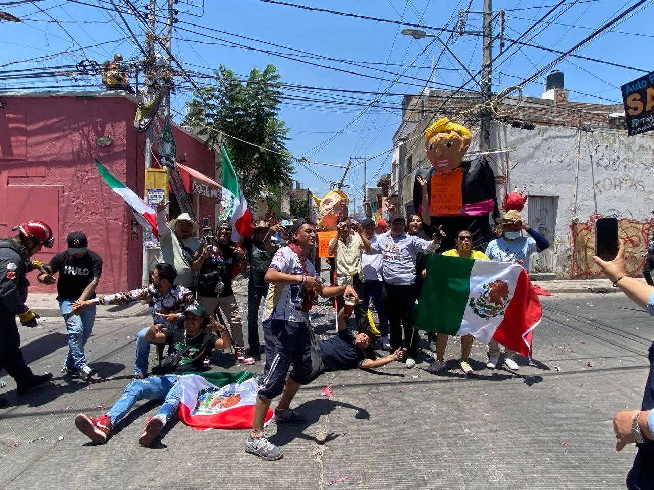 La segunda imagen en detonar fue la de Donald Trump, figura de más de un metro que hicieron explotar y que con temas de fondo como “Gimme the Power” y “Frijolero” de Molotov fue que se le dio fin a la explosiva figura.