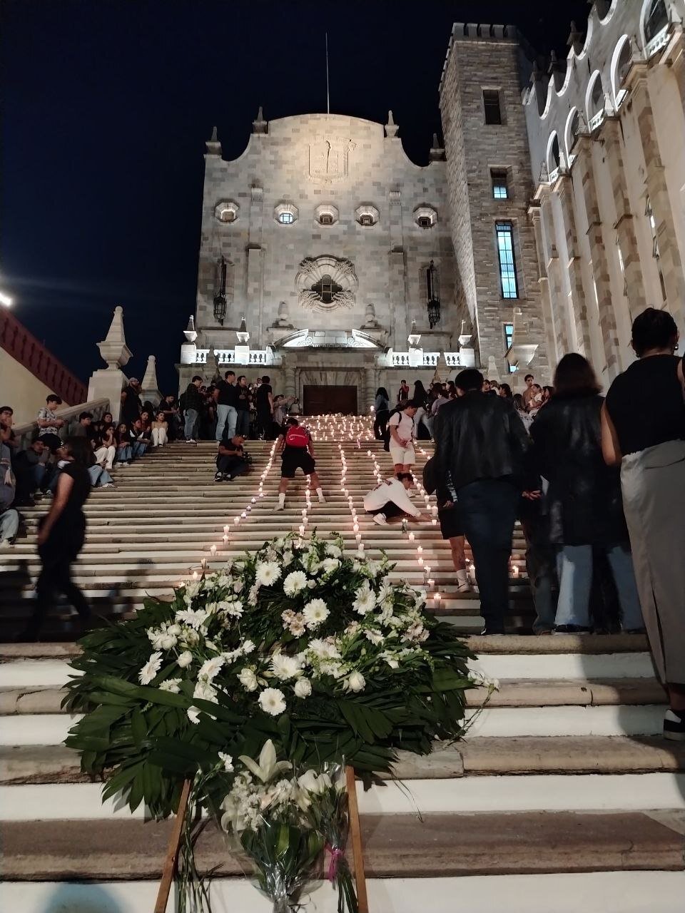 Casi en completo silencio, los miles de estudiantes y muchos ciudadanos fueron colocando sus veladoras desde la parte alta de las escalinatas, logrando cubrir prácticamente toda la escalera. La presidenta municipal de Guanajuato, Samantha Smith Gutiérrez, se solidarizó con la comunidad estudiantil y acudió a colocar su propia veladora.