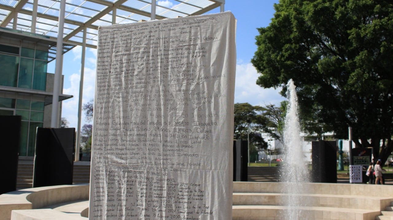 En ellas se muestran nombres de personas desaparecidas en Guanajuato, muchos de los cuales han sido escritos por familiares y colectivos de búsqueda como una forma de preservar la memoria y denunciar su ausencia.