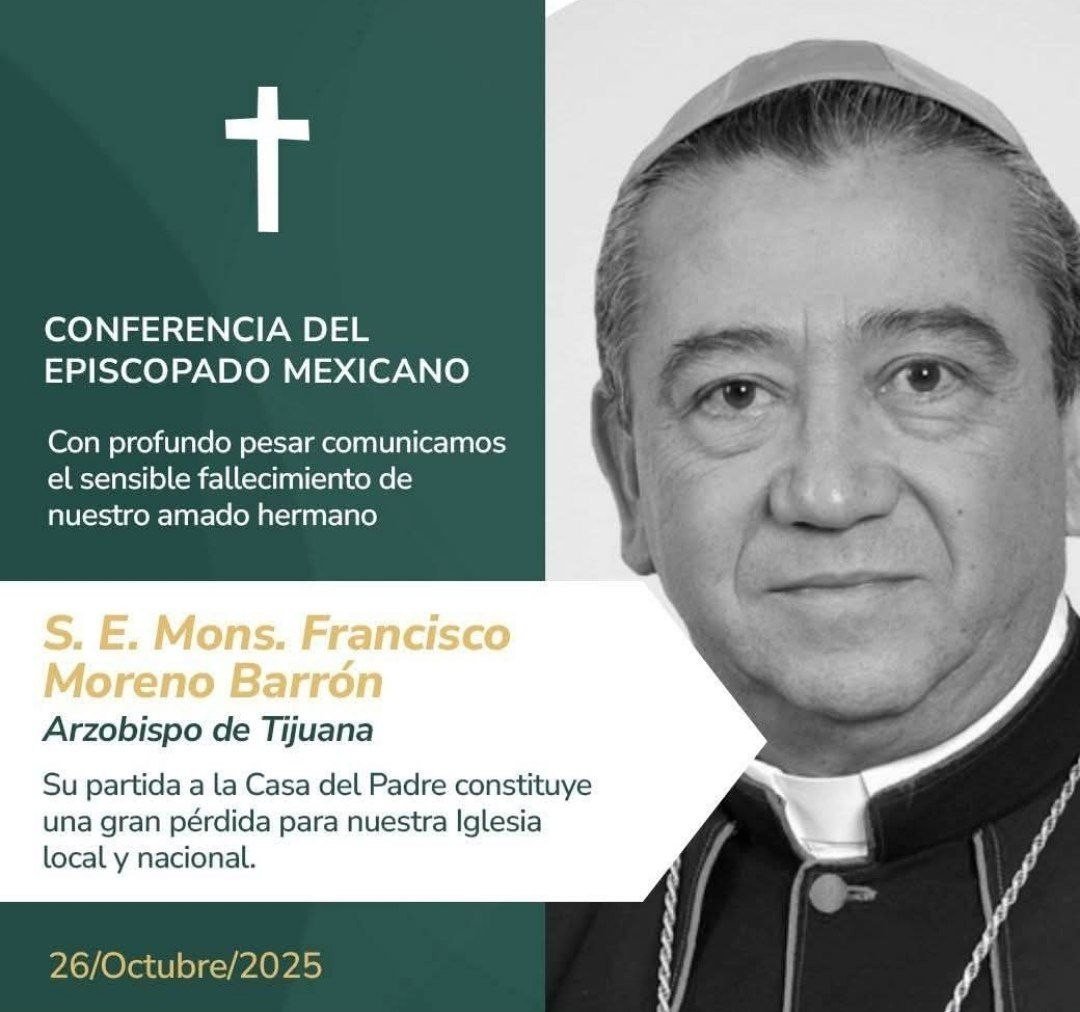 La tarde de este domingo a través de un comunicado la Conferencia del Episcopado Mexicano, o formó que, “con esperanza en la Resurrección comunicamos que nuestro hermano, Mons. Francisco Moreno Barrón, Arzobispo de Tijuana, ha sido llamado a la Casa del Padre el día de hoy. Como Iglesia, pedimos a todos los fieles que eleven sus oraciones por su eterno descanso, y manifestamos nuestras condolencias a sus familiares, amigos y fieles de la Arquidiócesis de Tijuana, a quienes sirvió en vida como su pastor, unidos en la fe y con la confianza puesta en Dios“.