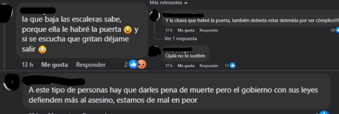 También es frecuente encontrar entre los comentarios el reclamo de que la mujer que aparece en el video abriendo y cerrando la puerta para el acusado, también sea llamada frente a la justicia ya que parece ser cómplice.