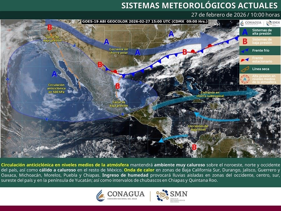 Baja California Sur, Durango, Jalisco Guerrero, Oaxaca, Michoacán y Jalisco serán las entidades donde la ola de calor se registrará con mayor intensidad.