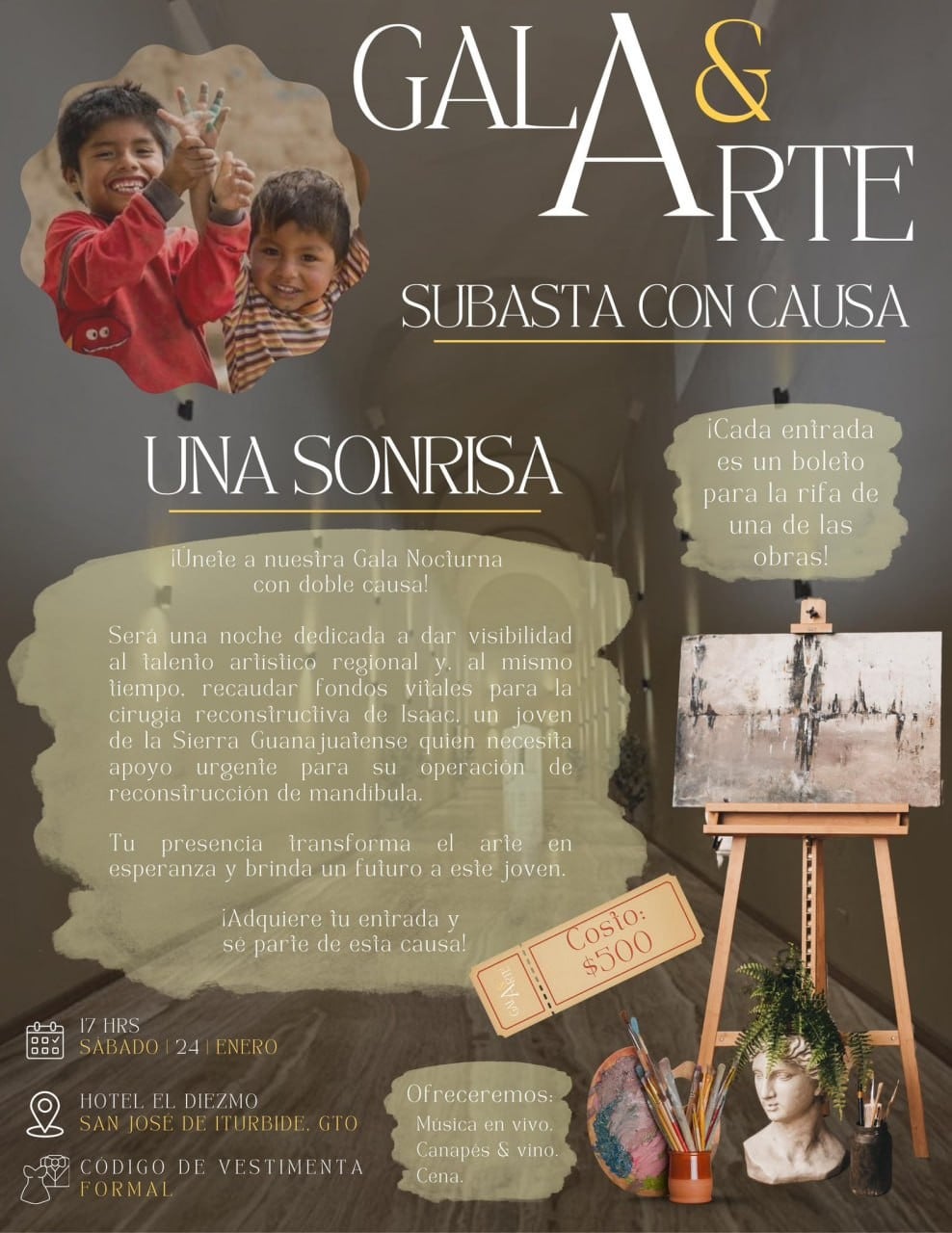 San José de Iturbide, Gto.- Bajo el lema “Una Sonrisa”, el municipio de San José de Iturbide será sede de la “Gala & Arte, una subasta con causa”, evento que tendrá como objetivo principal el recaudar fondos para la cirugía reconstructiva de Isaac, un joven originario de la Sierra Guanajuatense, quien requiere una reconstrucción urgente de mandíbula.