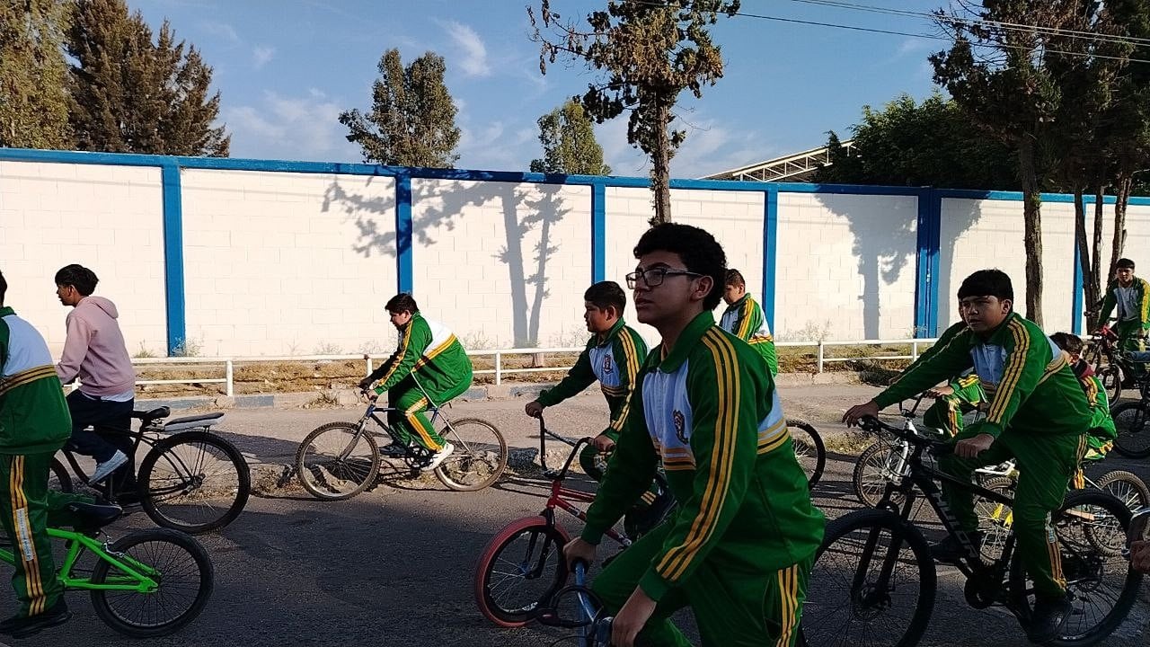 Los jóvenes estudiantes salieron desde las instalaciones del plantel educativo ubicado en la colonia Guanajuato a bordo de sus bicicletas hasta llegar a el Ecoparque, donde realizaron actividades dirigidas por personal de la Comisión Municipal del Deporte.