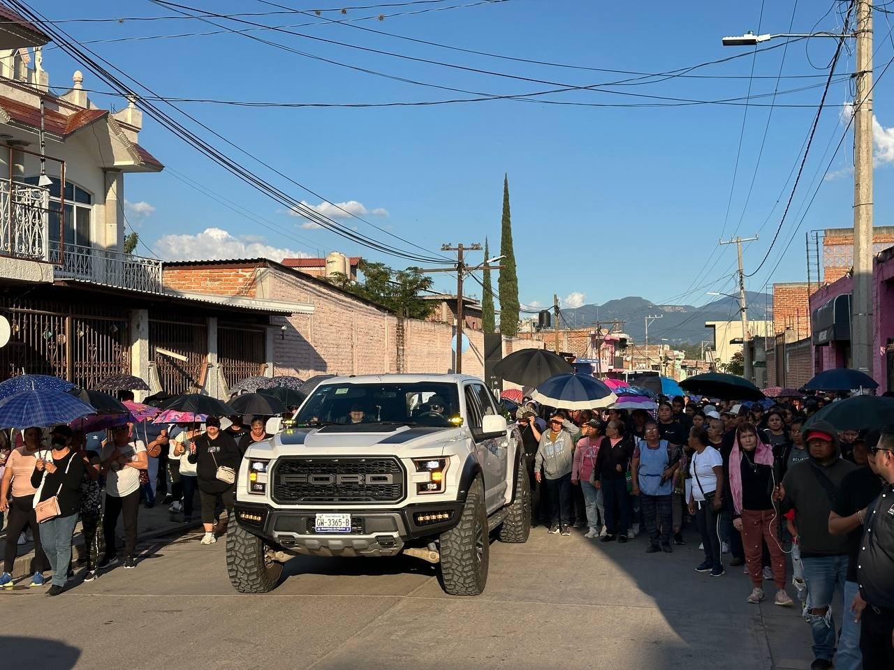 El féretro fue colocado en una camioneta Raptor color blanco, propiedad de José Guadalupe “Nico”, la cual era conducida por su esposa, Alejandra.