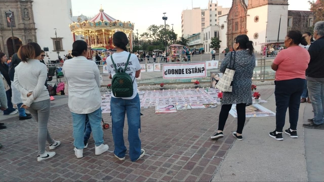 La tarde de este viernes, en la plazuela Miguel Hidalgo, alrededor de 20 integrantes de los colectivos colocaron lonas y pancartas con fotografías de sus familiares desaparecidos, además de veladoras, para sumarse al evento internacional “Luces de Esperanza”.
