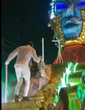El momento del accidente fue registrado por varios asistentes y fue difundido a través de redes sociales. En los videos se ve a la presentadora saludando al público desde un auto alegórico con una estructura piramidal.