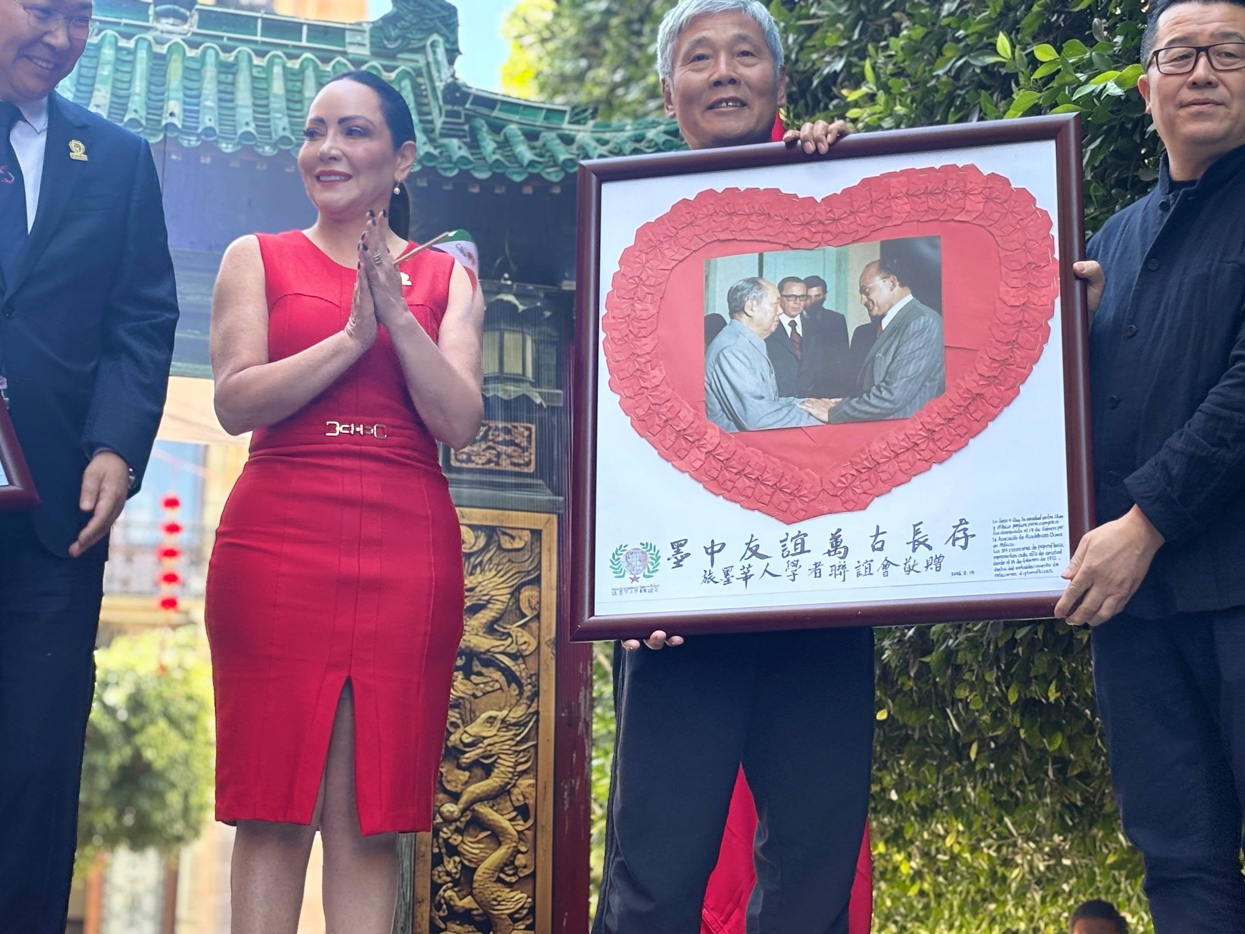 En conmemoración del 54 aniversario de China y México se entregó una serie de cuadros conmemorativos de la Asociación de Académicos Chinos a la alcaldesa de Guanajuato de la mano de representantes de la República Popular China.