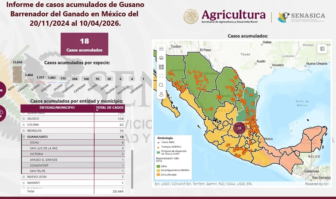Guanajuato, Gto.- La situación epidemiológica del Gusano Barrenador del Ganado (GBG) en Guanajuato ha dado un giro preocupante este fin de semana. El municipio de Victoria ha ingresado oficialmente al registro de zonas afectadas, reportando de manera inicial 3 casos activos.