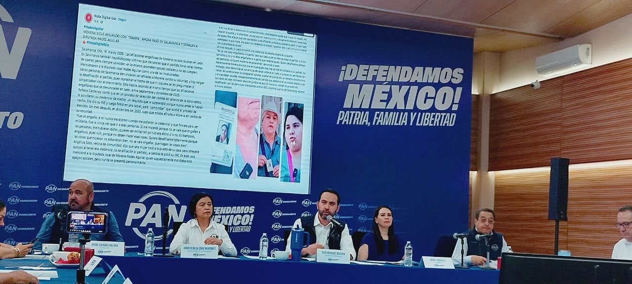 En la conferencia del PAN estatal, el pasado martes, el presidente del Comité, Aldo Márquez Becerra, anunció que prepara nuevas denuncias sobre presuntas afiliaciones irregulares y que uno de los casos ocurrió en Salamanca, donde personas cercanas a la diputada Hades habrían afiliado a ciudadanos bajo la promesa de apoyos sociales.