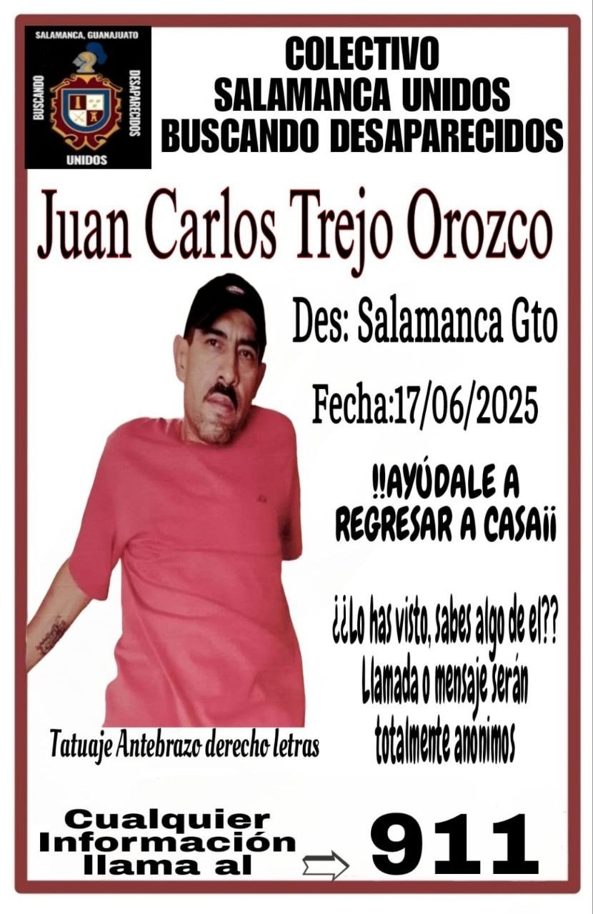 Salamanca, Gto.- Juan Carlos Trejo Orozco desapareció el 17 de junio de este año; lamentablemente fue localizado e identificado entre las víctimas que dejaron en bolsas en las inmediaciones de la comunidad de Mexicanos, Salamanca.