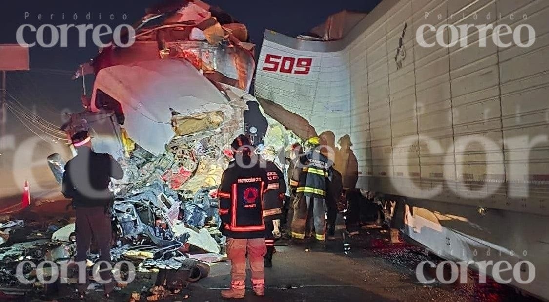 Choque entre tráilers deja dos muertos y una mujer lesionada en Libramiento Norte, Irapuato