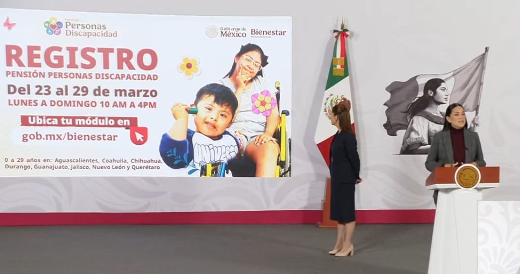 Guanajuato, México.- Como parte de los avances presentados en la mañanera de los programas sociales del gobierno federal, la titular de la Secretaría del Bienestar anunció la apertura del registro para la Pensión para Personas con Discapacidad.