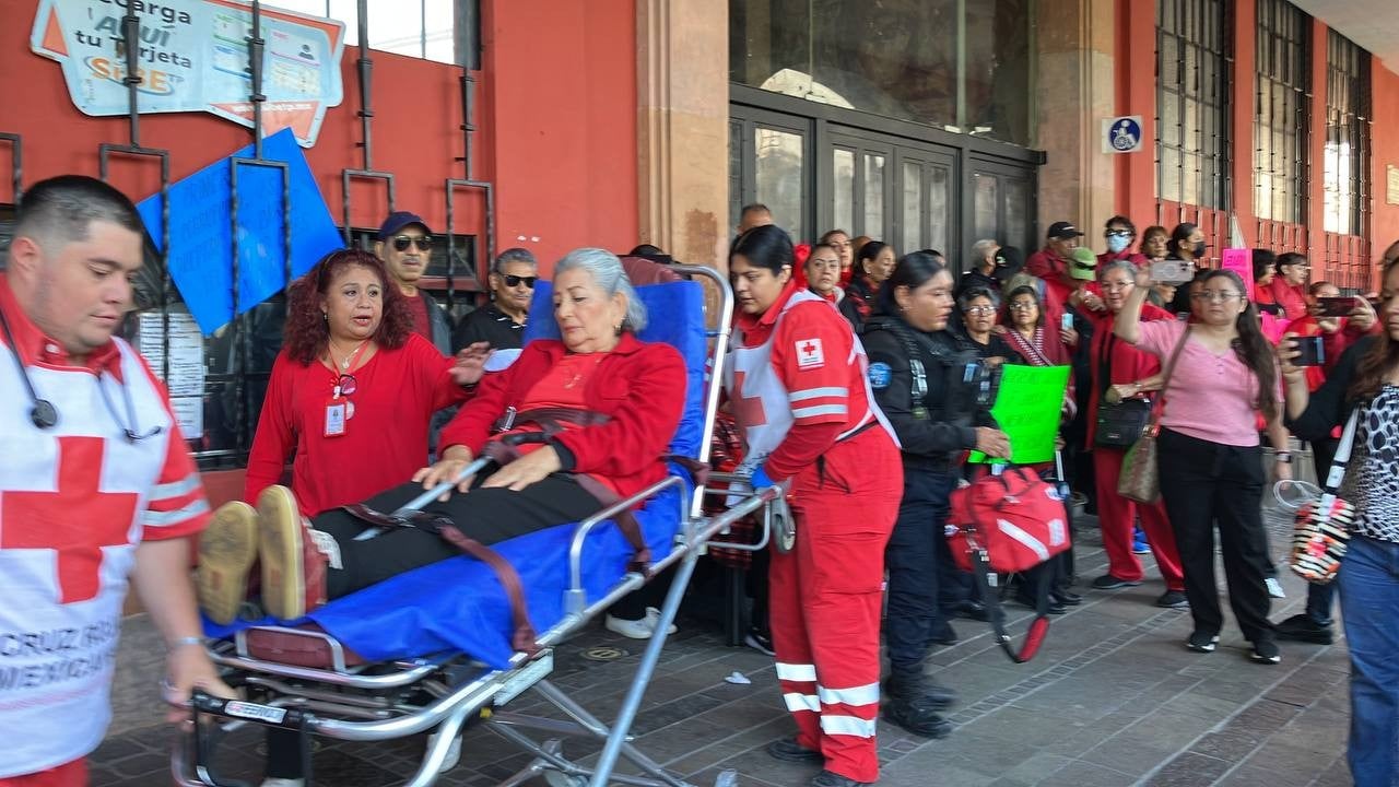 Una de las manifestantes se sintió mal este viernes en el plantón en Celaya y tuvo que ser atendida por paramédicos de la Cruz Roja.