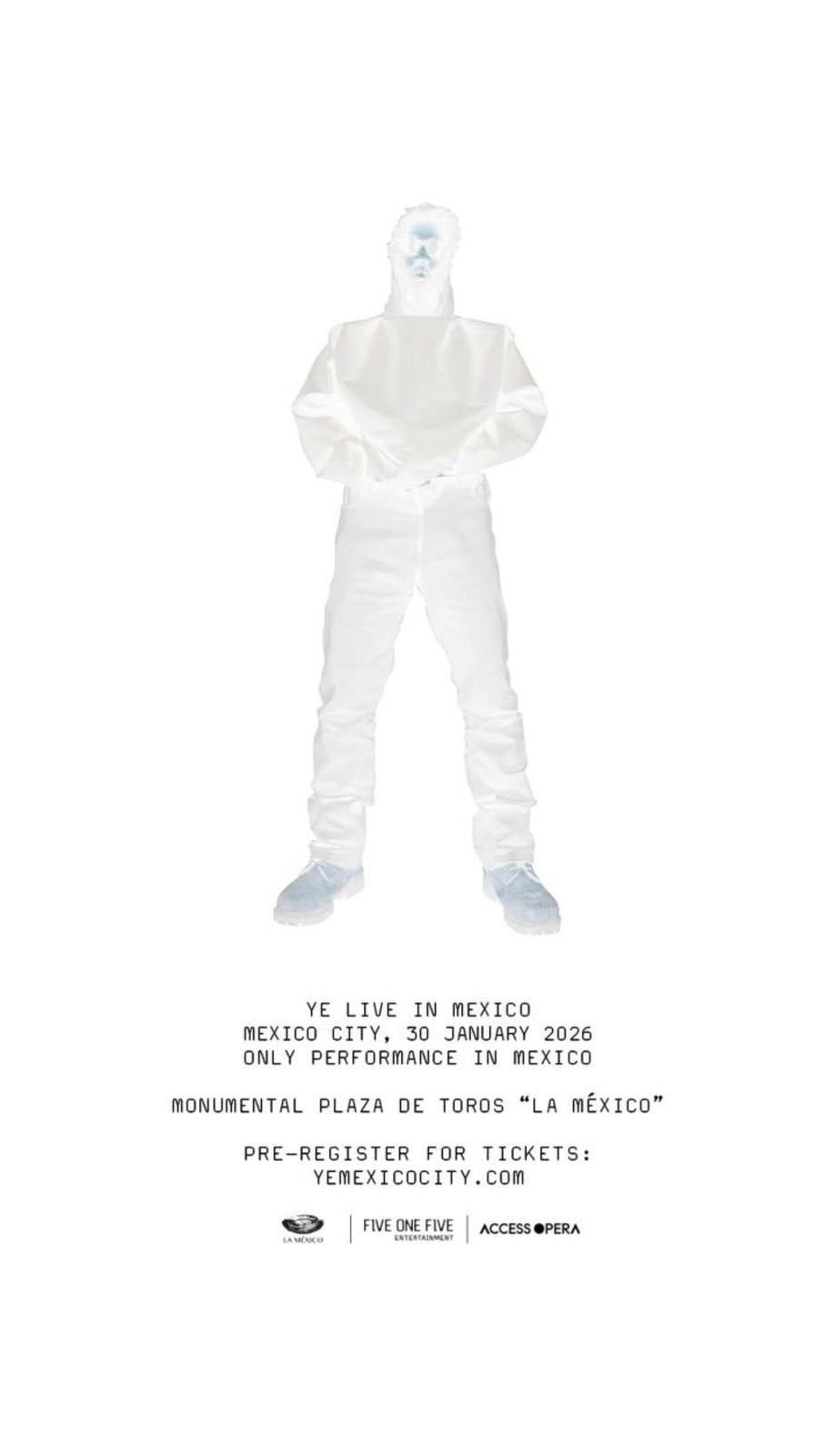 El concierto de Kanye West en México está programado para el 30 de enero del 2026, y es la única fecha en la que va presentarse, de igual manera tampoco se contará con su presencia en festivales de música confirmados, por lo que el concierto será irrepetible.
